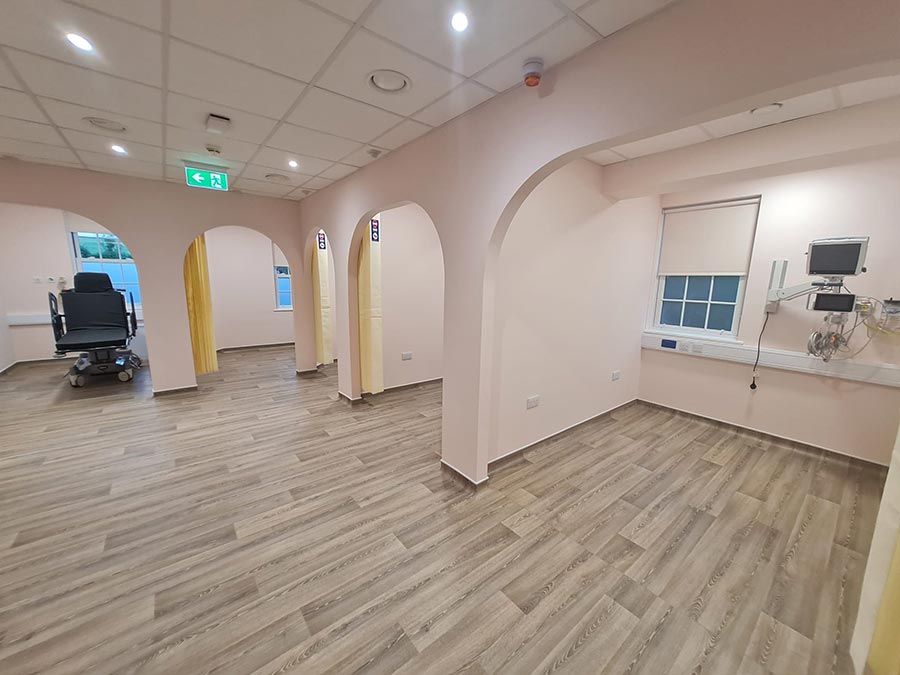 The completed hospital includes three state-of-the-art operating theatres with specialist ventilation and medical gas systems, minor operations facilities, recovery and overnight inpatient bedrooms, consultation areas, and a full range of clinical and auxiliary support spaces, including sterile services, staff facilities, catering, and plant areas.